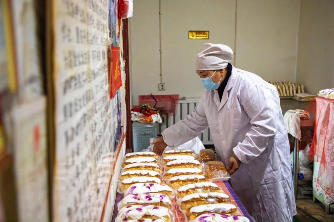 近日,在茫丁乡肖乃村村民博斯唐·哈森阿洪的糕点房,各种特色糕点和奶油蛋糕将货柜装得满满当当,她正忙碌地制作各类糕点。“这几天有几家超市预订了我的糕点,现在都做好了,准备给超市送过去。” 博斯唐·哈森阿洪说。