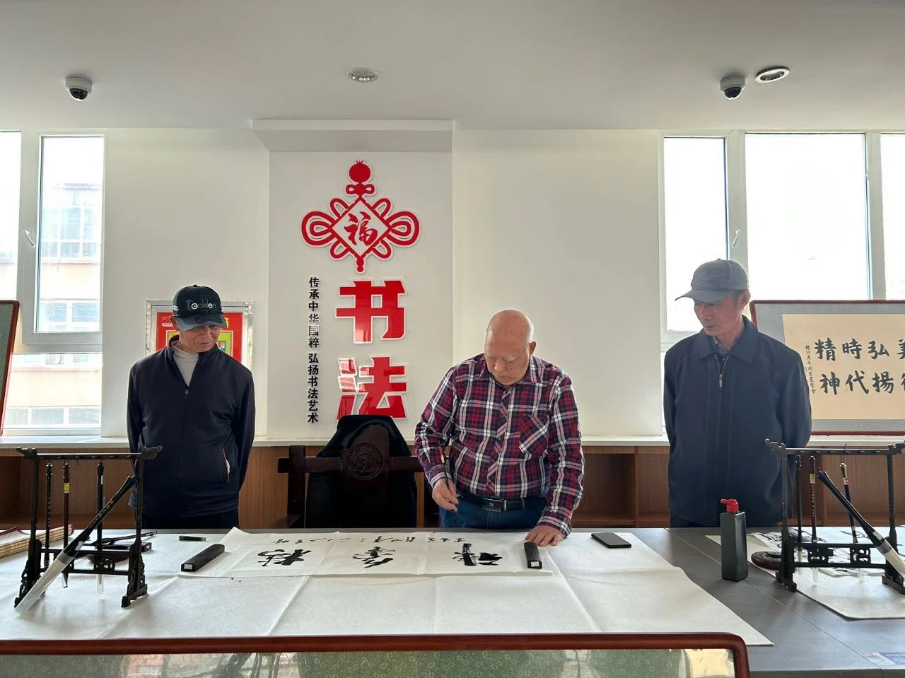 近日,记者来到精河镇锦福社区二楼大厅,一群书法爱好者们在这里铺纸研墨,一同交流书法经验。不一会儿,大家都被书法爱好石廷玉的新作品吸引了过去,对他的这幅新作品连手称赞。厅内洋溢着浓浓墨香,令人沉浸其中。