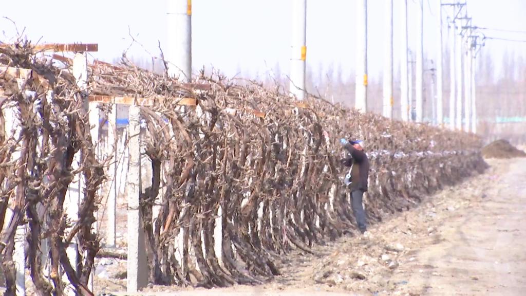 随着气温不断回升,连日来,精河县农民抢抓农时,对埋在土中越冬的葡萄及时开沟清土、整枝上架,为今年葡萄丰收奠定基础。