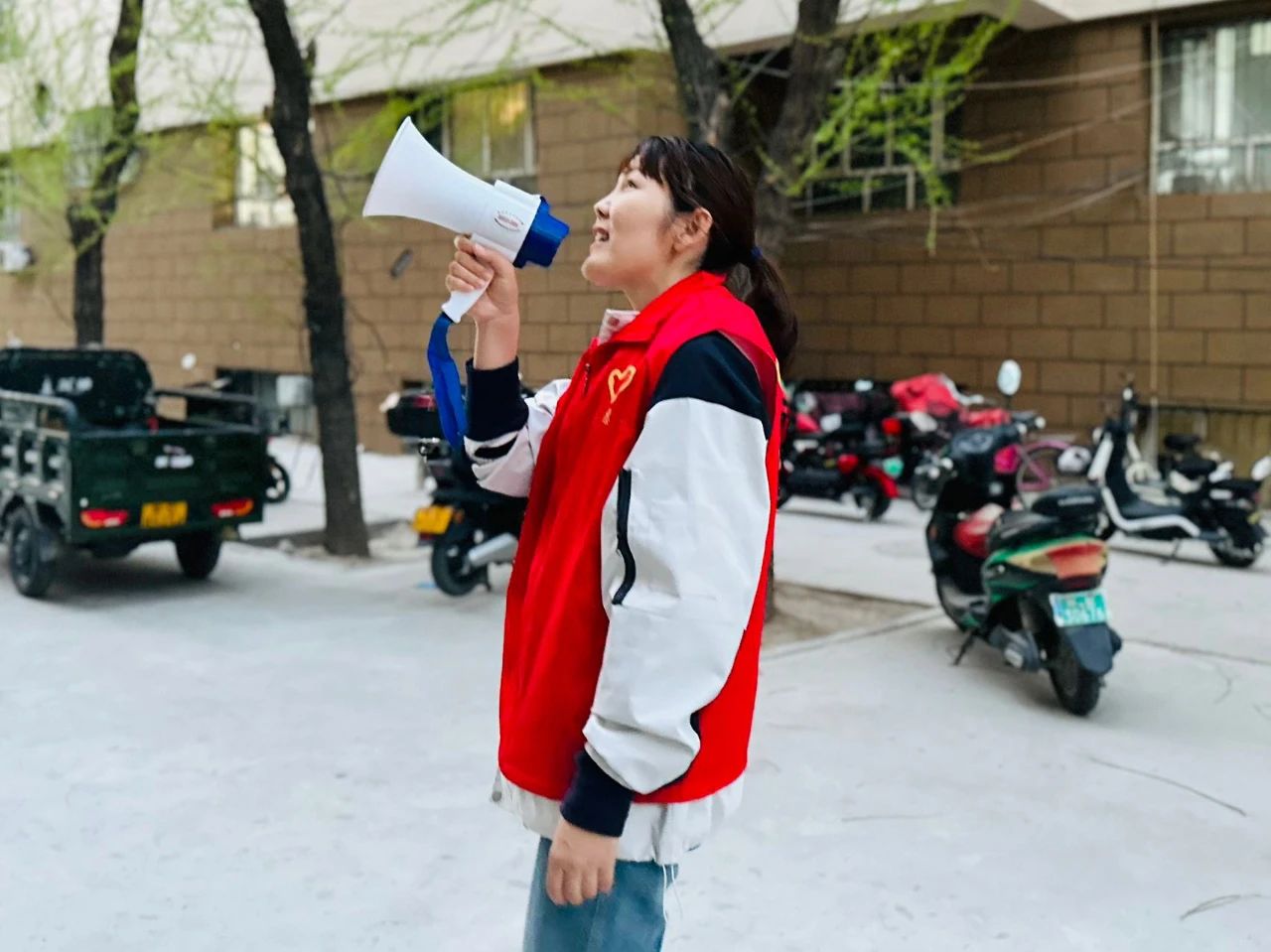 “友好社区的居民们,大家好,我们是‘红马甲’志愿服务队伍的志愿者,请不要在楼道内堆放杂物,把电动车和自行车停放在楼下的黄色区域内或者充电桩停放区域,小区的环境需要我们共同来维护,让我们大家一起努力创建和谐文明的社区氛围。”在友好社区,总能看到一群身穿红马甲、手持小喇叭,穿梭在小区里的志愿者进行文明宣传,引导居民群众携起手,用自身实际行动,为迎接国家卫生县城复审和创建自治区文明城市奉献自己的一份力量。