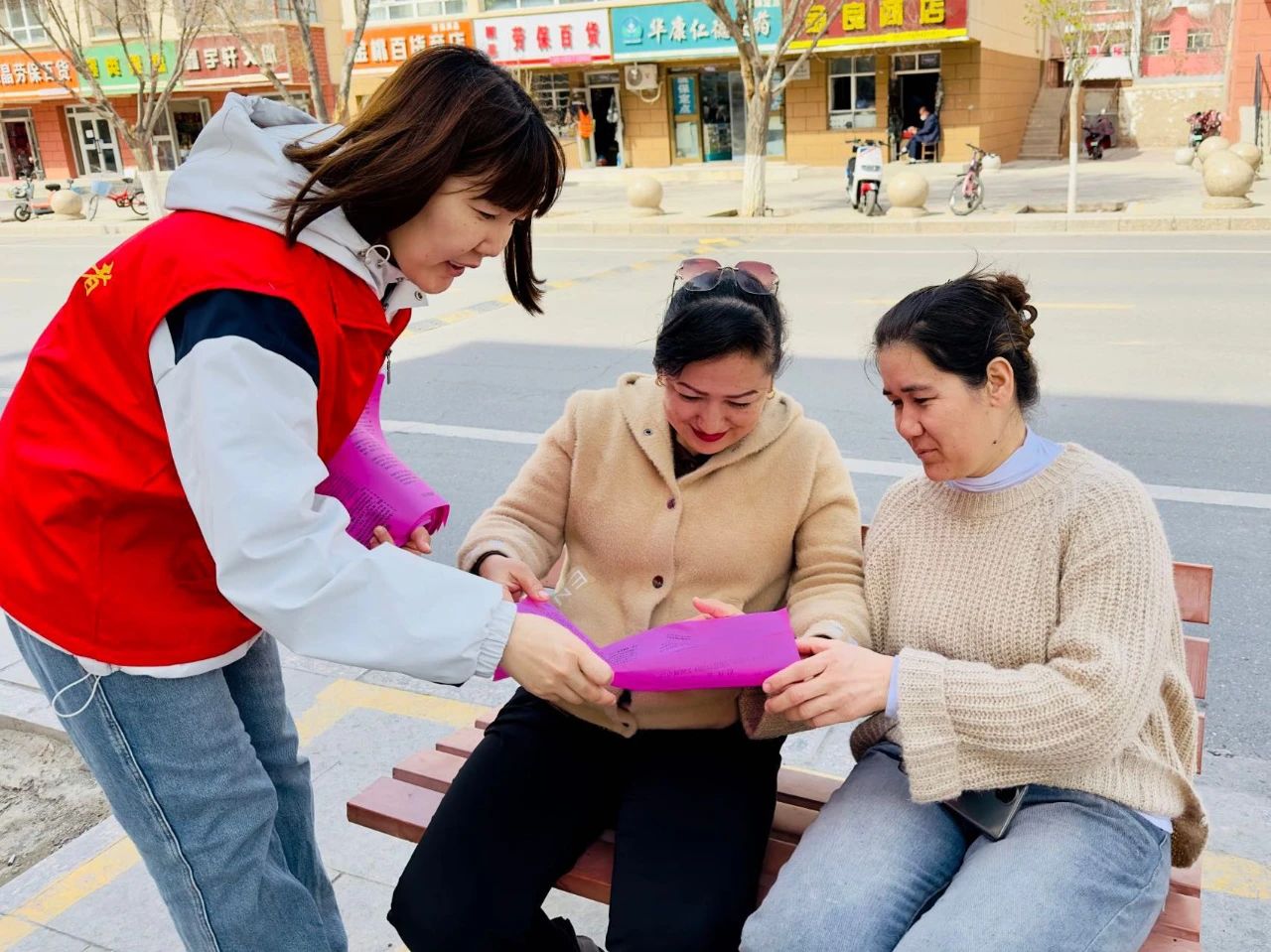 正值晴好天气,道路上来往行人和车辆络绎不绝,精河镇“红马甲”志愿者们热心上前,将一份份创城宣传页送到群众手中,向群众宣传创建文明城市的内容和意义,面对面普及创城小知识,认真倾听居民对创城工作的意见和建议,倡导群众用实际行动支持和参与国家卫生县城复审和自治区文明城市创建,让更多群众共享精神文明创建成果。