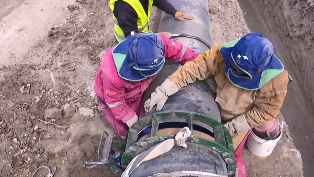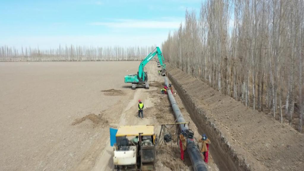 走进精河县大河沿子镇中型灌区节水配套改造项目的施工现场,记者看到挖沟、吊装、焊接…… 一项项水利工程建设正在加快推进。
