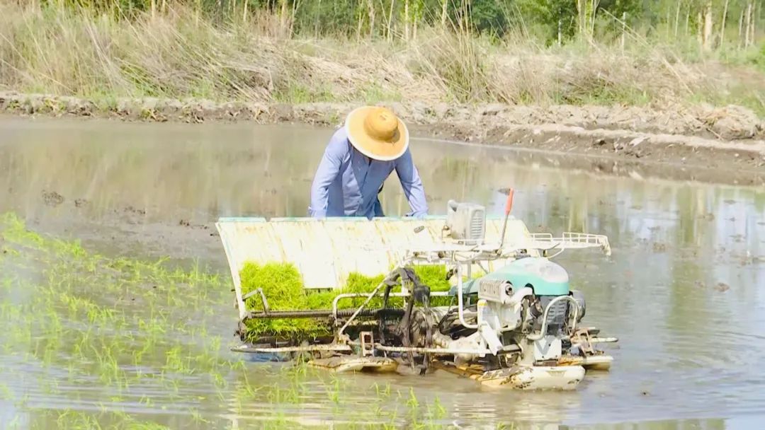 在五棵树村乡村振兴示范点的一块梯田里,记者看到两辆插秧机来回穿梭,青翠的秧苗一株株、一排排在田间挺立。这也是高全海今年的新尝试。“我种了150亩水稻,品种选用的是香米1号和新耕2号,大概的生长期是123天。”