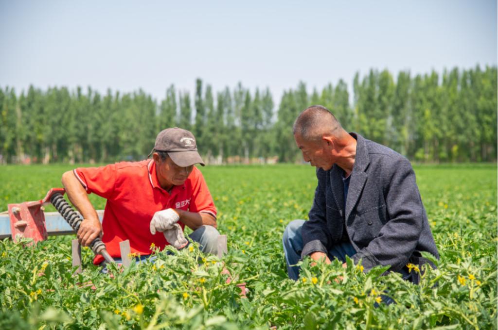 俗话说“三分种、七分管,丰产丰收才保险”。在阿合其农场农二队种植户罗贤民的380亩番茄种植基地,一排排藤上硕果累累,长势喜人,他正驾驶着拖拉机来回穿梭,中耕松土。罗贤民说:“现在是西红柿开花挂果的关键时期,目前正在松土,提高地温,这样产量也会增加。”今年是罗贤民第一年种植加工番茄,年初他与新疆双河红番茄制品有限公司签订了订单合同,在品种选择、播种、田间管理、水肥管控等全过程,都有专业技术人员“一条龙”技术跟踪服务,为他的增产增收保驾护航。“今年种植的西红柿属于订单合同,公司负责机采、收购。预计在七月底左右就能上市,预计每亩地的产量能达到8吨到10吨。”罗贤民说。