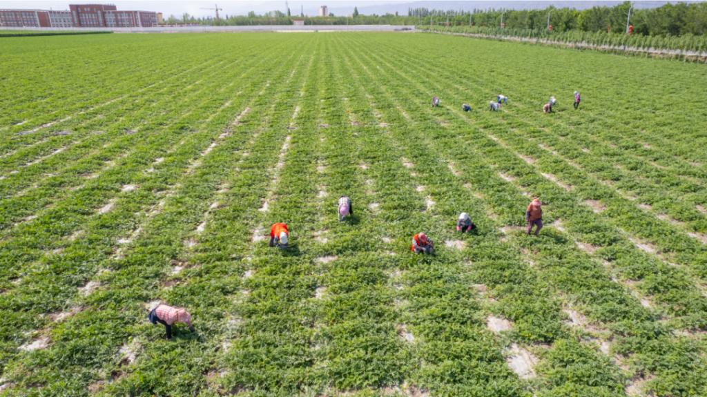 眼下,正值玉米、西瓜、番茄等农作物田间管理的关键时期,精河县阿合其农场的种植户们抢抓农时,在田里开展各类管护作业,为今年农业丰产丰收打下坚实基础,田间地头呈现一派忙碌景象。