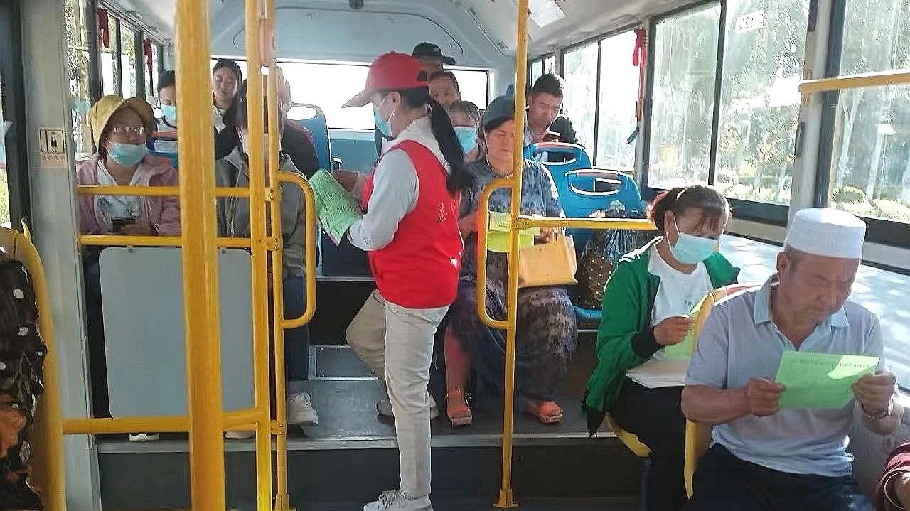 近日,八家户农场组织志愿者在精河县8路公交车开展“文明乘车 从我做起”为主题的“双创”宣传活动。在公交车上,志愿者通过向乘客发放宣传单、手机卡片等方式讲解精河县创建自治区文明城市应知应会,共同擦亮文明城市的“流动窗口”。
