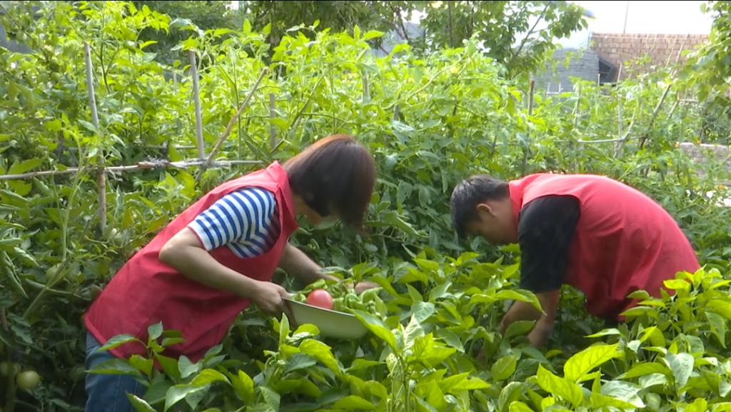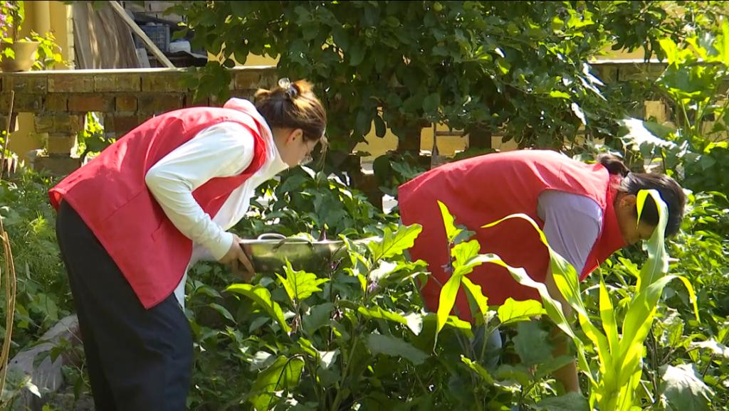7月4日,在八家户农场牧业四队职工克里木·铁瓦尔德的院子里,志愿者身着红马甲穿梭其中,摘下一筐筐辣椒、西红柿。克里木·铁瓦尔德说:“我家里养了牛,院子里还种了一些菜,队上的干部们就经常过来帮我喂牛、种菜。每年到这时候,他们还帮我摘菜、卖菜,让我又多了一份收入,真的非常感谢他们。”