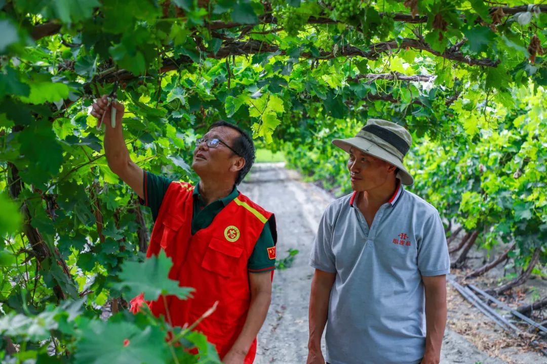 托托镇农业办主任彭新华说:“现在葡萄已经进入了挂果期,我们及时开展技术指导,以达到稳产高产的效果。”产业是乡村振兴的重要支撑。在精河县大新农农民专业合作社的示范带动下,托托新村通过“党支部+基地+合作社+农户”的发展模式,共吸引26名农户参与进来,发展葡萄种植,年产量约1000吨,产值近600万元。同时,该村还种植了鸡心海棠果,带动群众多渠道增收,实现了农业增效有“路”、 农民增收有“方”。