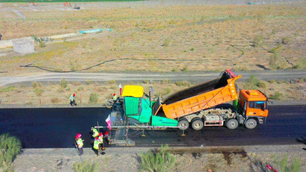 近日,精河县茫丁乡Y032线K17+647岔口--嘠顺呼都格村公路建设项目正在如火如荼开展,目前已进入沥青路面摊铺阶段,这标志着该路段正式进入通车倒计时。