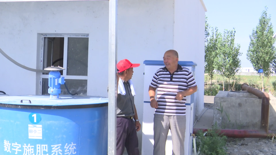 近日,八家户农场农八队棉花种植户苟军林正在忙着给棉花地浇水。苟军林说:“这两天高温天气,棉花会出现不同程度的干旱,棉花打顶结束后,我第一时间就给棉田浇水。”