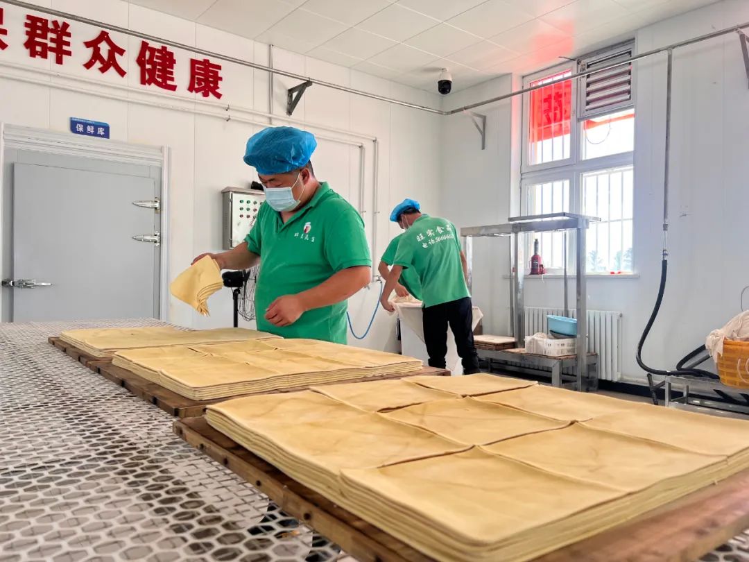 公司负责人王军红说:“我们正在制作豆皮、豆干、豆腐、手工面筋等产品,制作好以后摊凉,再放进保鲜库,我们的产品深受顾客喜爱,目前为博乐及精河30余家餐饮店及商超供货。”