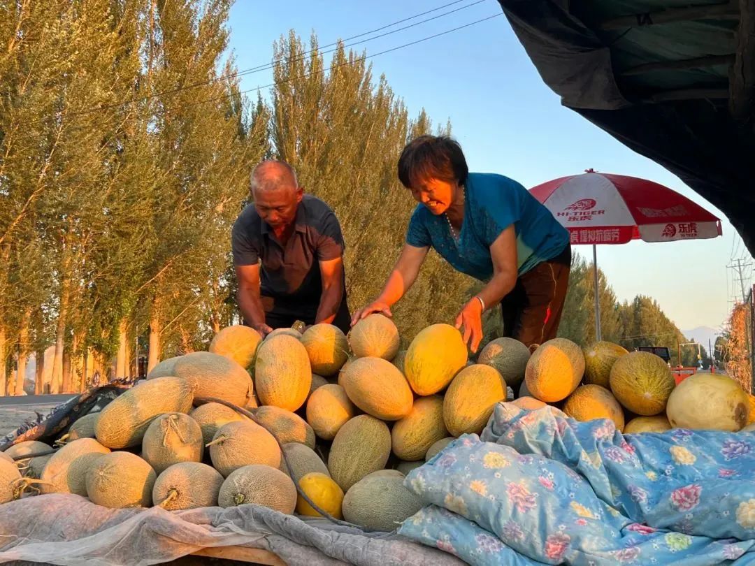 眼下,正是瓜果成熟上市的季节,精河县茫丁乡的甜瓜喜获丰收,个大瓤脆,甘甜多汁的甜瓜不仅甜了百姓的舌尖,也成为村民的致富产业。