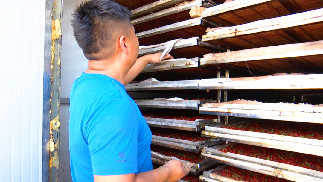 永集湖村“两委”还将村里闲置资源利用起来,通过招商引资,一座占地16亩,拥有10间烘干房,年烘干加工能力300吨的工厂拔地而起。主要用于烘干、加工、包装、储藏枸杞、打造线上、线下相结合的经营模式,实现产业规模化和市场化经营。杞靓果烘干场负责人宋坤说:“目前烘干房里有20吨的枸杞鲜果,预计两天能烘干,果子颗粒大、甘甜,算下来有10万多元的收入。”