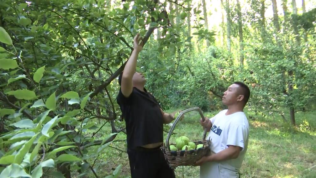 游客叶保华说:“这个山上的果园环境好,可以自己采摘过称,梨子口感很好又脆又甜。今天我和朋友一块开车过来摘了十几箱子,准备在中秋节送给亲戚和朋友。”