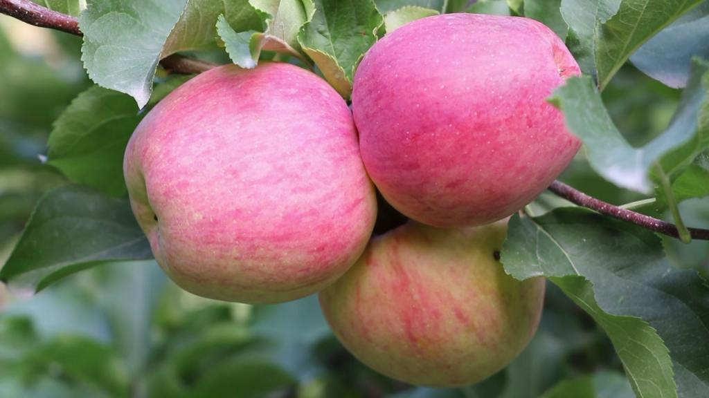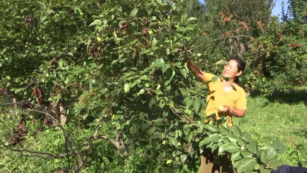 “果园里还种了一些李子、海棠果。今年还尝试了一些新品种,比如新帅糖丝红心。我们这里离雪山近,温差大,所以糖分高。经过检测,今年梨子的糖分达到了13,顾客都比较喜欢。”丁明从乐呵呵地说。