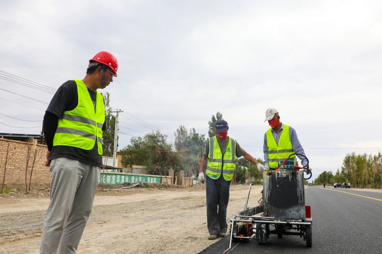 9月8日,记者在八家户农场牧业二队项目施工现场看到,工人们正在有序对已铺设好的沥青路面进行路面标线施工作业。项目技术员王建松说:“我们正在开展标线施工,预计9月9日完成 。”