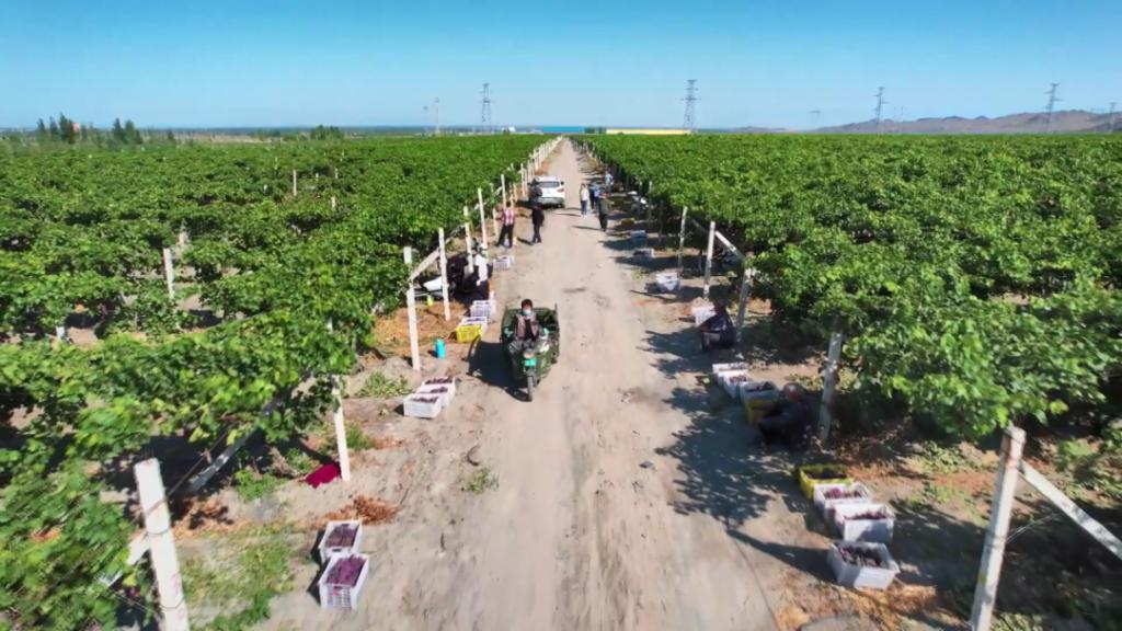 近日,精河县茫丁乡葡萄陆续成熟,迎来采摘黄金期,村民们抢抓时节,采收葡萄,上市销售。9月11日,在精葡酒业有限公司千亩葡萄园基地,一排排整齐的藤上挂满了成熟的葡萄,工人们穿梭于葡萄架下,忙着采摘、打包、称重、装运,一片繁忙景象。
