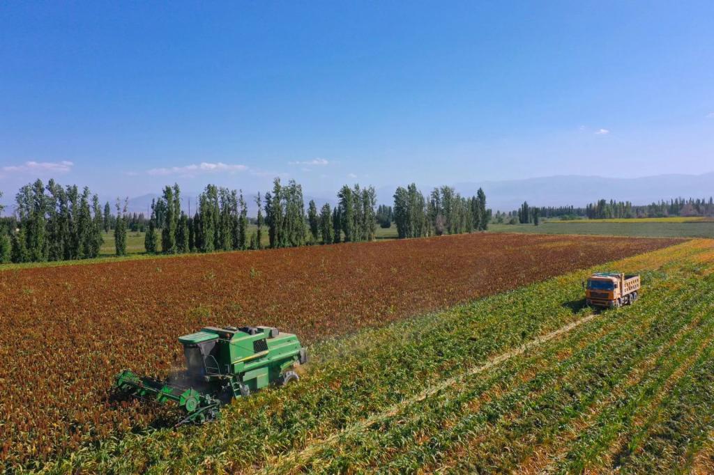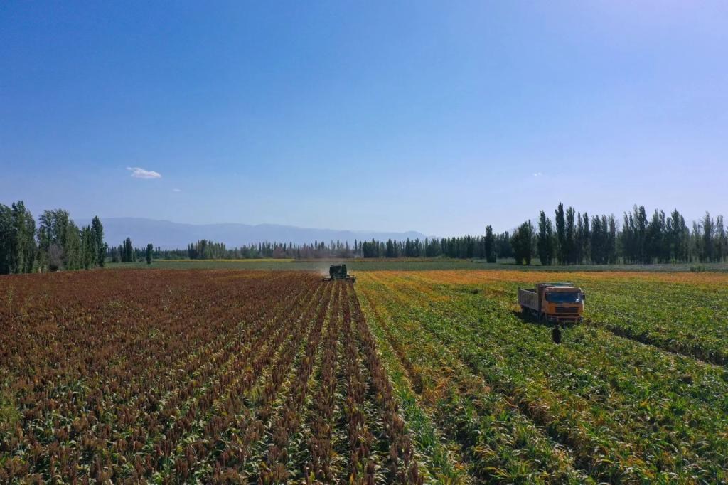 秋来五谷丰,高粱别样红,连日来,精河县托里镇种植户也趁着晴好天气抢收成熟高粱,田间地头呈现一派繁忙景象。