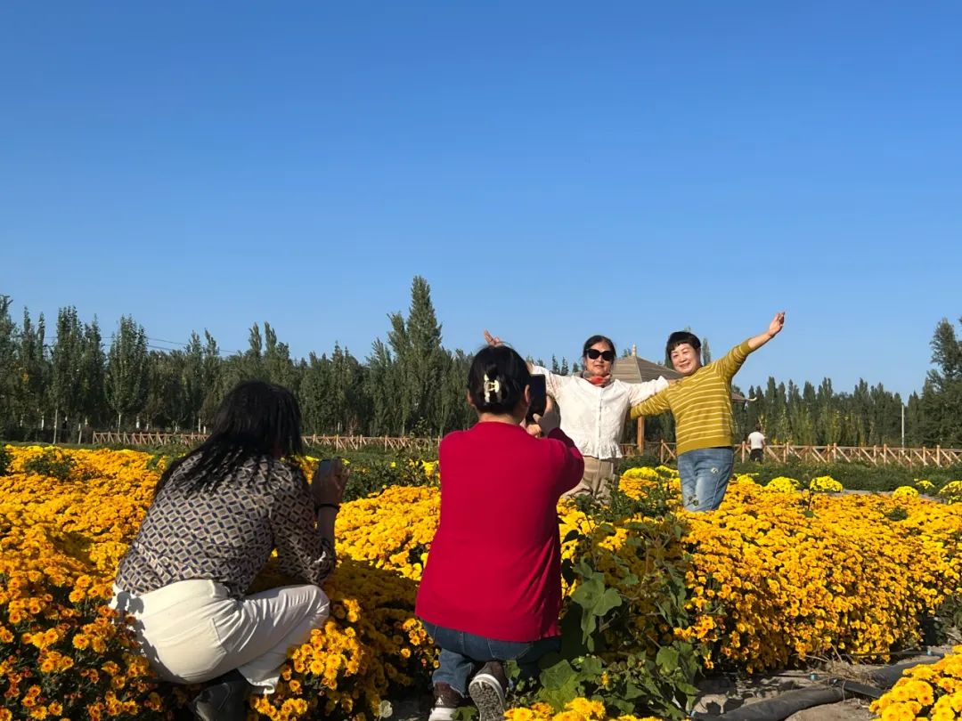 近日,在精河县茫丁乡五棵树村菊花基地里,五彩缤纷的菊花,在阳光的照耀下竞相开放、争奇斗艳,散发出沁人心脾的芳香,络绎不绝的游客走进菊花基地欣赏美景,感受秋日爽朗。