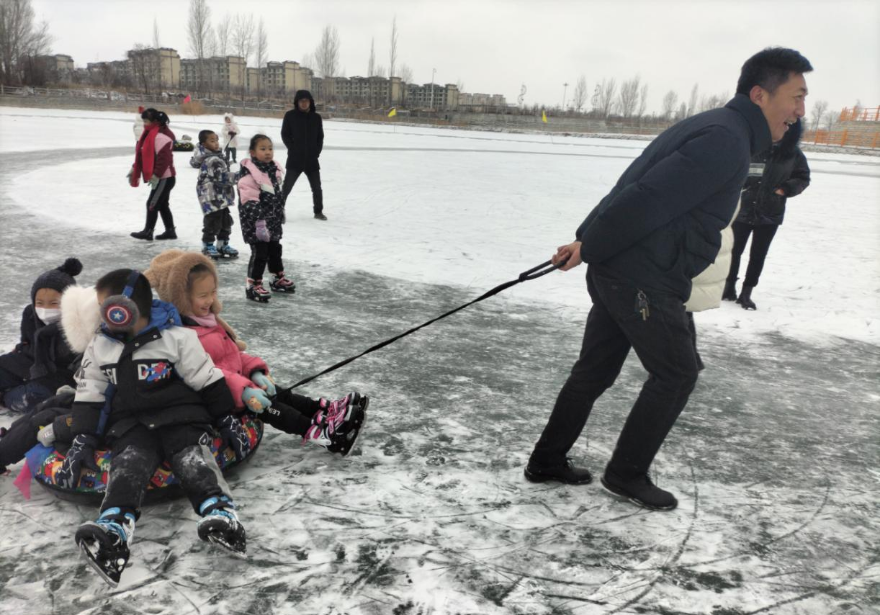 “妈妈,妈妈来追我呀,瞧我的冰刀滑得多快!”循着雪地里孩子们玩耍时欢快的欢呼声。在精河县生态园冰场,精河县第一小学一年级三班正在开展“踏冰玩雪 畅游冬季”亲子活动。
