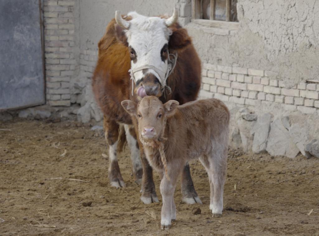 大河沿子镇乌什布拉克村村民乌克安尼·外力挥舞着铁锹,忙碌地清理着棚圈,脸上洋溢着幸福的喜悦。牛圈内“哞哞”声不绝于耳,牛宝宝蹒跚学步。考虑到气温低,乌克安尼·外力还贴心地给它们穿上了暖和舒适的棉马甲。他说:“我家现在共有40多头牛、50峰骆驼和10匹马,目前已经接产了10头牛犊。”