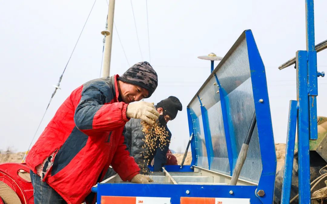 3月20日,在大河沿子镇呼苏木齐村种植户薛强的农田里,机械声隆隆作响,装载着北斗导航的小麦播种机在田间来回穿梭,一粒粒小麦种子被陆续播撒进地里。伴随着播种机的阵阵轰鸣声,铺设滴灌带、播种、覆土、平整等工序一次性就完成。薛强种植小麦已有3年,这几年,他采用精河县推广的科学化种植模式进行小麦播种,由于管理得当,再加上专业技术人员的全程指导,今年他对小麦种植充满了信心。“我们已经开始春播小麦,使用北斗导航装置的播种机效率很高,4至5小时就能完成播种。今年工作人员给我介绍了抗盐碱性好、抗倒伏能力强的小麦品种,预计今年产量能达到预期效果。”薛强说。
