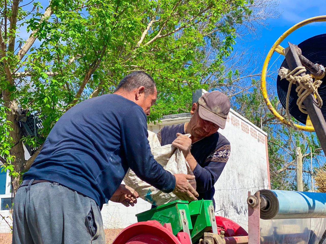 近日,记者在大河沿子镇乌什布拉克村村民沙达提汗·道山汗家看到,犁地机正在他家的庭院里来回穿梭,现场一片忙碌景象。“天气暖和了,把家中的院子平整一下,准备在自己庭院里种植一些饲草料,喂养牲畜。”沙达提汗·道山汗说。