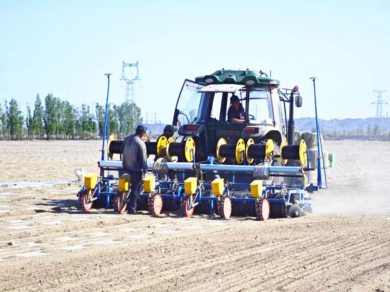 与此同时,在茫丁乡皇宫南村的棉花种植地,精河县耕耘农机合作社社长陈义龙正在农田指导农机手开展棉花播种。陈义龙说:“我们合作社是2011年成立的,目前有耕地13000亩,有大马力拖拉机17台、打包机3台、散花机1台,现在农业生产全程机械化,不仅提高了土地利用率,还节省了管理成本。”