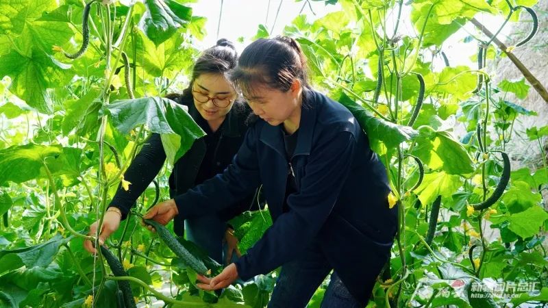 4月23日,精河县茫丁乡东庄村村民陈燕家的黄瓜进入采摘期,下周就能大量上市售卖了。石榴云/新疆日报记者 白素君摄