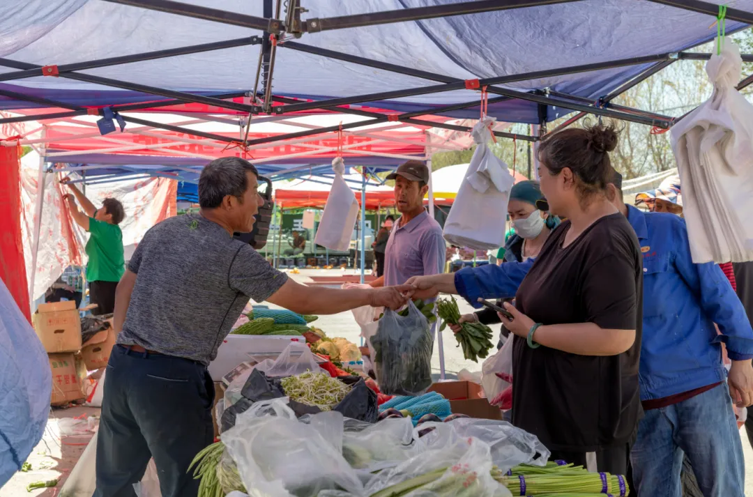 八家户农场职工马佳君每周四都会来赶集,新鲜的果蔬,亲民的价格,总能让她满载而归。“集市上的货品齐全还物美价廉,离我家很近,特别方便。”马佳君说。八家户农场集市于2002年建成,设有农副产品、特色小吃、蔬菜交易、五金家电、日用百货等200余个摊位。为更好地促进集市经济,农场出台了摊主减免租金等扶持政策,引导当地农牧民参与特色产业销售、流通,实现多元收入。
