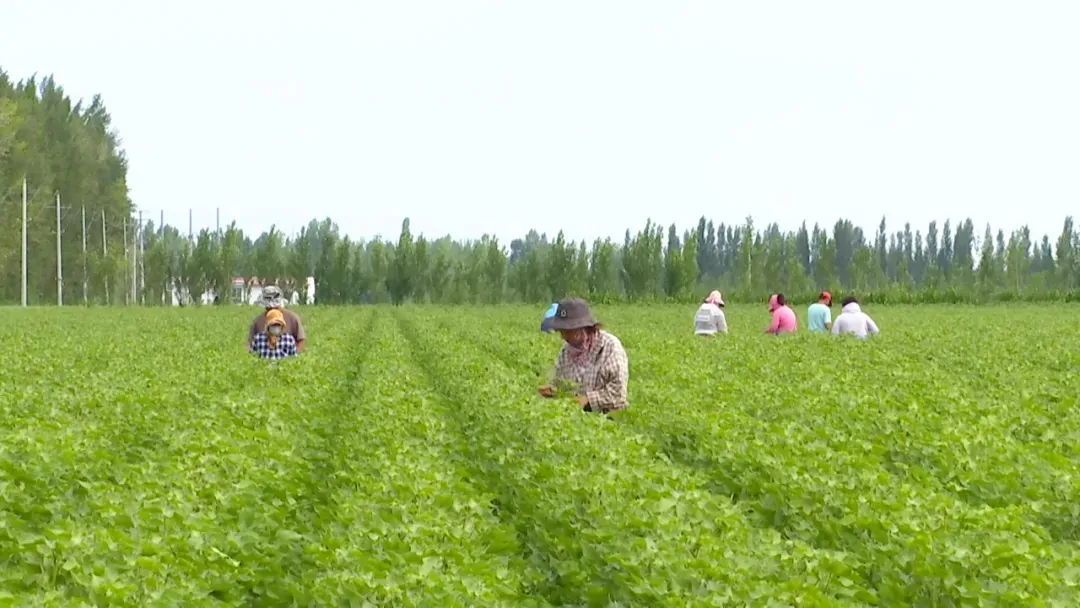 6月25日,在位于茫丁乡北地西村的精河县聚晟种植专业合作社的地里,一排排棉苗整齐排列,随风摇曳,一派生机勃勃,社员张才正在棉田查看棉花长势。他说:“现在正在查看有没有病虫害,顺便拔草,根据情况准备浇水、施肥等工作。”张才是茫丁乡北地西村的棉花大户,也是精河县聚晟种植专业合作社的社员,今年他种植的400亩地棉花长势喜人,目前棉花已陆续进入花蕾期,县农业技术推广中心的技术人员为他提供“一对一”技术指导,对于今年的棉花增产丰收,张才充满了信心。“现在农田管理都是科技机械化,还有农业技术人员的科学指导,一个人管理上百亩农田不成问题。”张才说。