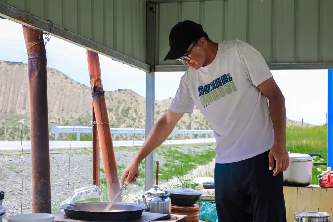 进入夏季以来,茫丁乡小海子悦来融舍牧家饭店便热闹不已,负责人叶斯包里·别日克江忙着接待前来旅游就餐的游客,每日收入不菲,他也乐得合不拢嘴。他说:“这条路修好了以后,游客也多了起来。现在旅游旺季,每天大概能接待50余人。而且我还养了骆驼,通过销售骆驼奶还能收入1000元左右。总体算下来,年收益较之前增加了10余万元。”
