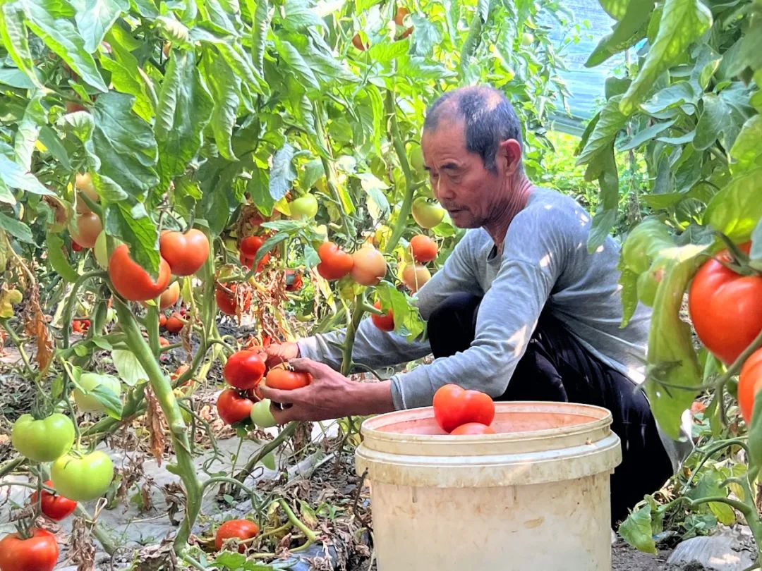 张金林说:“我今年种了3座棚的西红柿,每天为县城超市供应,目前已经销售西红柿6吨。”张金林是茫丁乡新庄村的种植大户,种植蔬菜大棚已经23年,目前承包了7座设施大棚,主要种植西红柿、辣椒、芹菜等蔬菜。从选苗、培育、施肥、授粉、挂果……每个环节张金林都格外用心,在他的精心照料下,各类蔬菜长势喜人,收获满满。“我今年种植了两季蔬菜,预计年收入10万元。”张金林高兴地说。