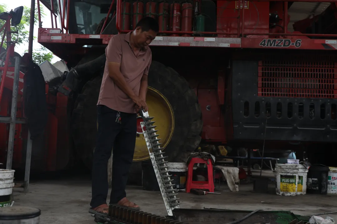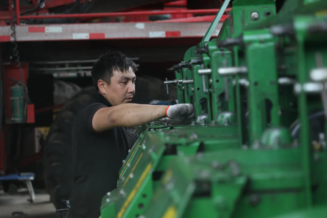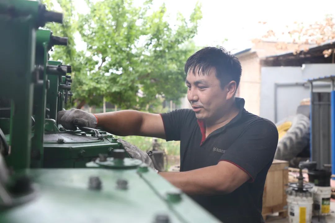 7月17日,在精河县大河沿子镇尕顺布拉格村精河县贵隆农机专业合作社,农机设备整齐地停放着,维修人员正在对各类农业生产机械设备进行全面彻底的检修和保养。“我们7月初开始保养的,现在已经把青储机保养完了,还有两台采棉机,预计8月底保养完。”精河县贵隆农机专业合作社负责人王新建说。王新建是精河县大河沿子镇尕顺布拉格村的农业种植户,也是精河县贵隆农机专业合作社的负责人,近年来,随着农机作业现代化水平不断提升,王新建也依靠自家的农机设备获得一笔可观的收入。眼下各类作物陆续丰收,王新建这两天也抢抓时间对自家投入秋收的各类农机具进行维修和保养。