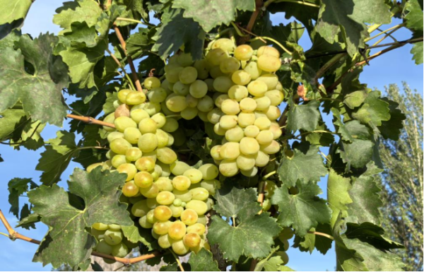 夏已尽秋已至,位于精河县茫丁乡皇宫南村的老李果园又迎来了一年一度的葡萄丰收季,葡萄园里弥漫着浓郁的果香,串串饱满的葡萄挂满枝头,果园里一片丰收的景象。走进葡萄园,密实实、郁葱葱的叶子下,一串串晶莹剔透的葡萄挂满了藤架。水晶的、碧玉的、紫红的、玫瑰色的葡萄沉甸甸地坠在藤上,在阳光下散出阵阵芳香,令人垂涎欲滴。果园负责人李胜义正忙着修剪葡萄树,他高兴地说:“葡萄已经逐渐成熟,采摘期可持续到10月上旬。”