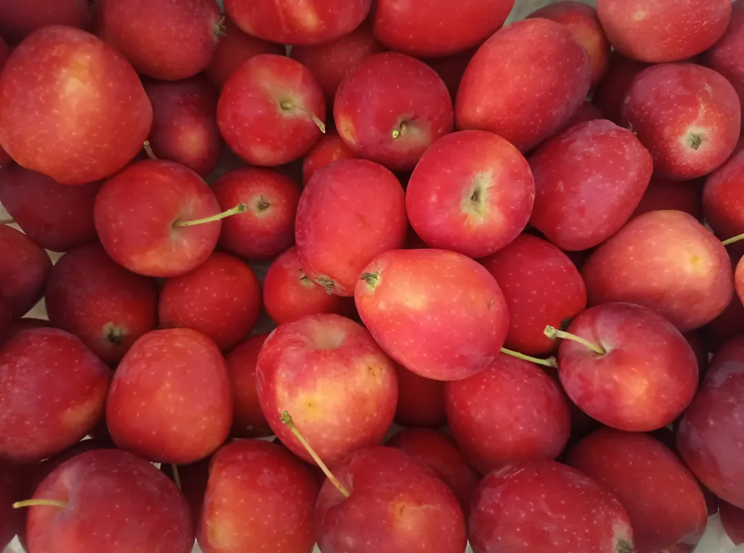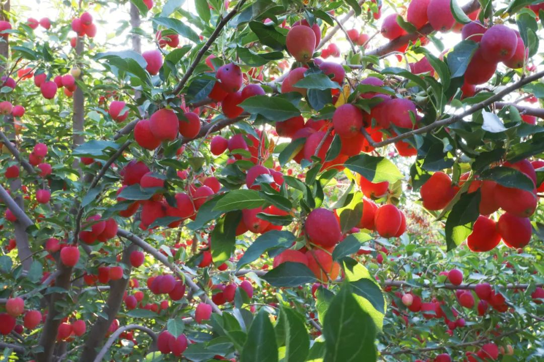 陈俊孟介绍道:“今天香妃海棠园正式开采,大约30亩地,一直能采到9月底。我组织了4名工人采完就放冷库储存。”2019年,陈俊孟发现香妃海棠抗寒耐旱性极强,且好管理、产量高,于是投资20余万元引进4000多株果苗在托托镇种植。经过5年的精心管护,如今这片果园已进入盛果期。