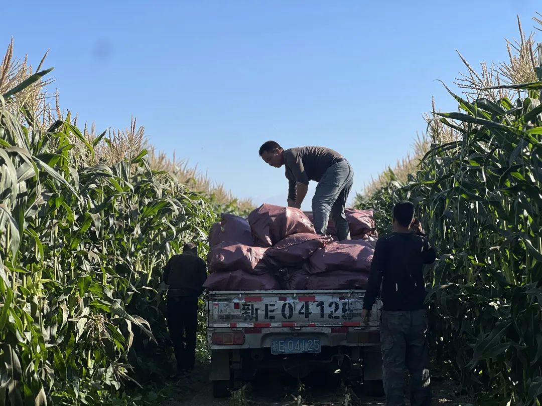 客商肉孜阿红·阿布地力依木说:“这里的玉米品质好、口感甜,今天装了5.5吨玉米,这已经是第二趟了,打算运到伊犁市场销售。”