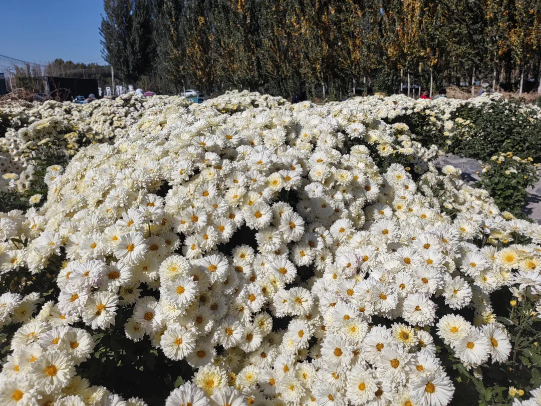 与此同时,菊花基地里的观赏菊也正值盛花期,吸引不少游客走进菊花基地欣赏美景,感受秋日爽朗。目前菊花基地共占地140亩,其中药菊100亩,观赏菊40亩左右。特色菊花的种植既有观赏价值,又能产生一定的经济效益。高全海介绍,这里的菊花共有白菊8种颜色,还有7种颜色的北京夏菊是观赏菊。“现在看到的除了观赏菊,所有白色菊花都有经济价值。观赏菊是和茫丁乡打造的旅游民宿相结合,为带动精河县的旅游和周边民宿发展贡献力量。”