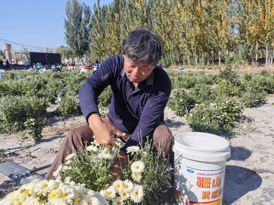 浙江桐乡鑫农机械科技有限公司负责人姚洪良说:“这100亩菊花预计能收100吨鲜货,现在采摘已经进入中后期,我们要抓紧时间在霜降之前完成采摘。随后将新鲜菊花运往附近加工厂进行进一步加工。如果明年种植面积继续扩大,我们将考虑在精河新建加工厂房。”