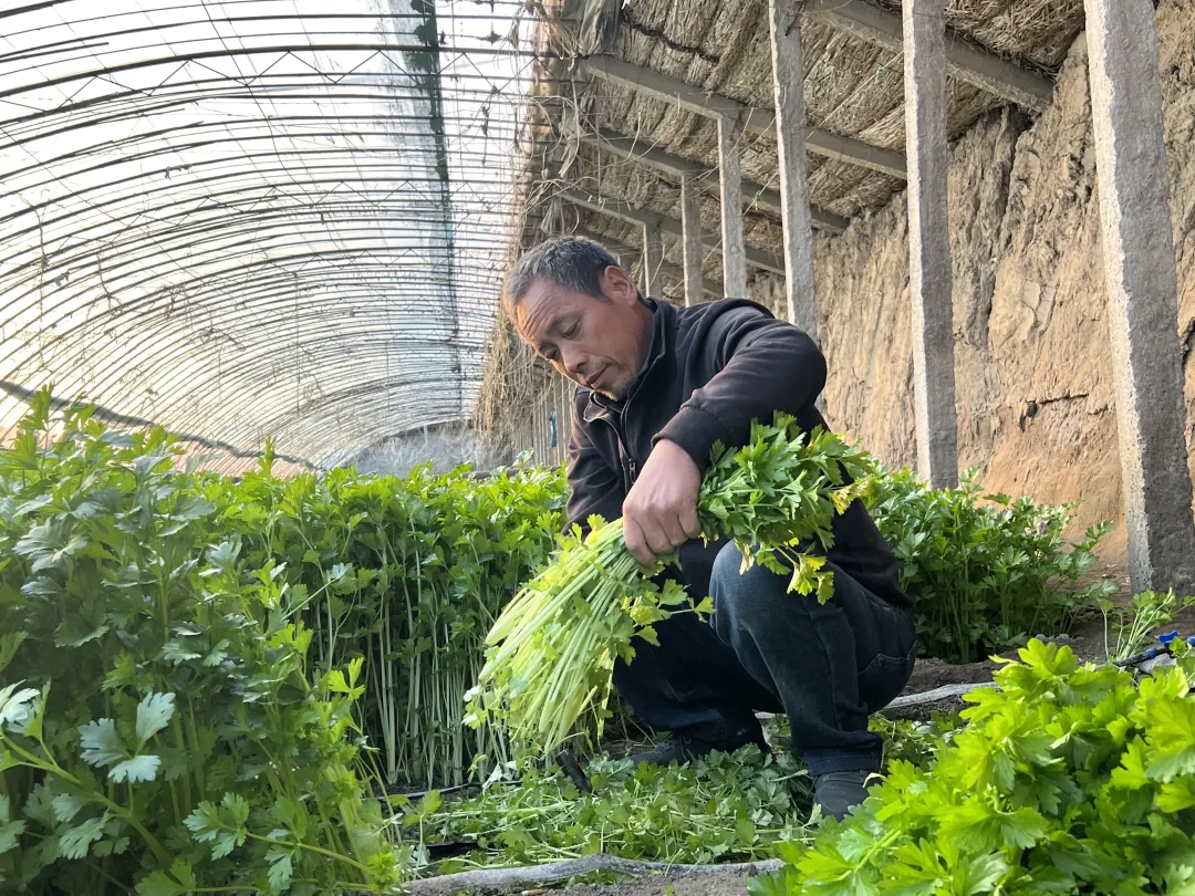 在茫丁乡新庄村蔬菜种植基地,一座座大棚整齐排列在田间。走进种植户张立峰的棚内,满眼翠绿,毛芹的清新气息扑面而来。他正忙着铲芹菜、剪根、打捆、过称,准备销往周边市场。