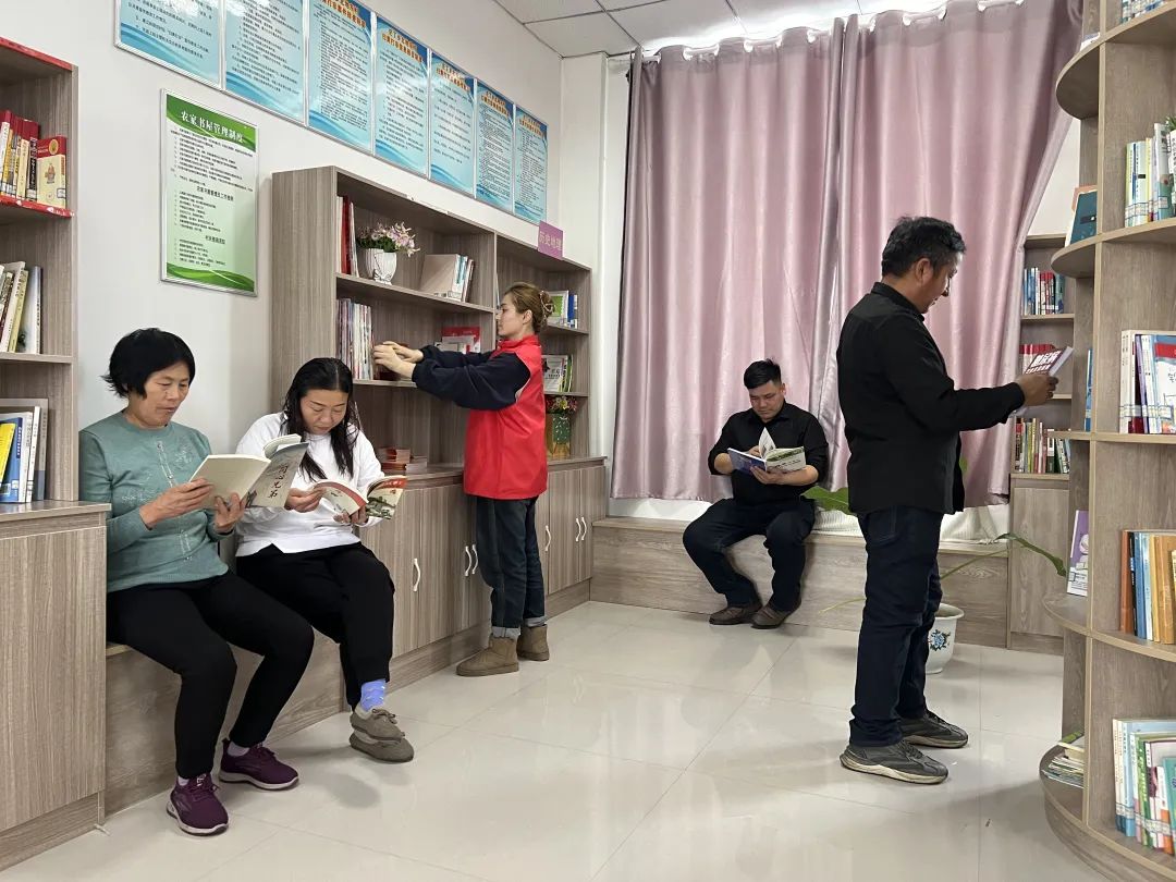 与此同时,在大河沿子镇额勒森陶勒盖南村,农家书屋同样热闹非凡。辖区群众纷至沓来,沉浸在书海之中汲取知识养分。有人专注研读农业书籍,探寻增产增收之道;有人则钻研法律知识,为生活添一份保障。