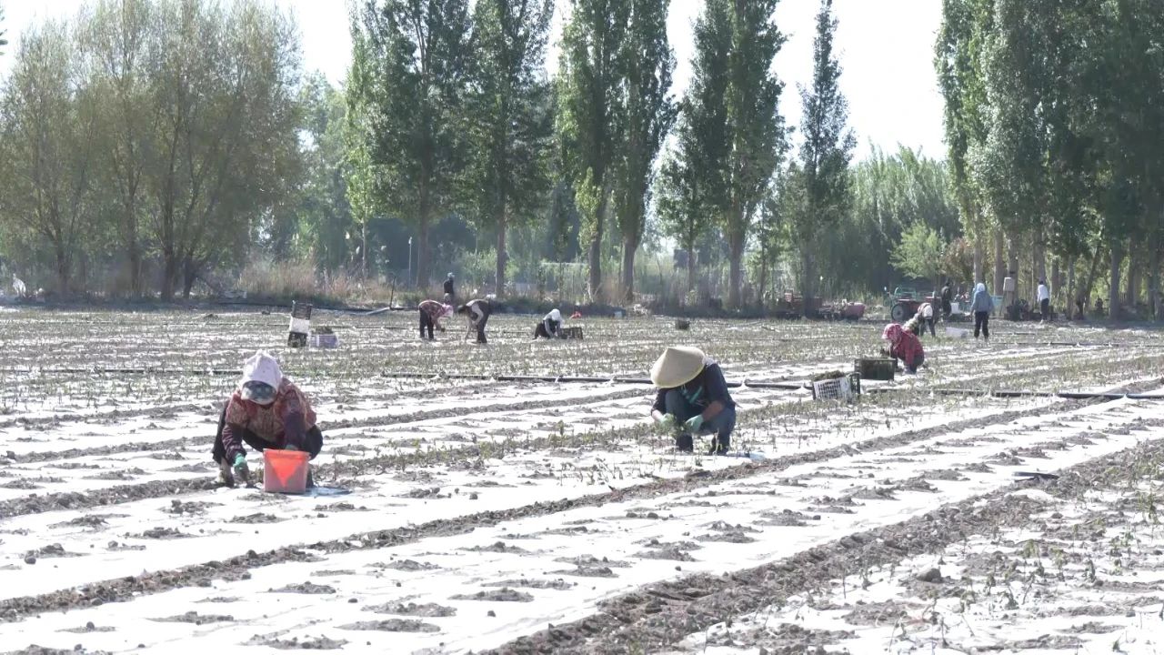 精河县红色高郡农牧业发展有限公司技术员曹清乾介绍:“今年是我们种植菊花的第三年。现在正在移栽菊花,我们今年准备种130亩地,其中彩菊70亩、白菊60亩。”