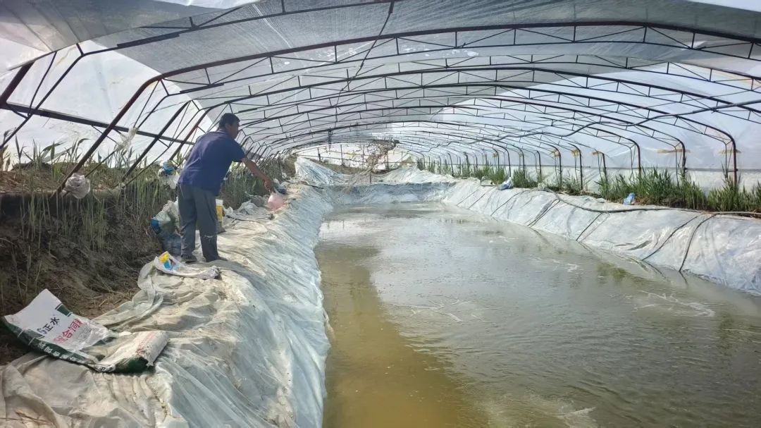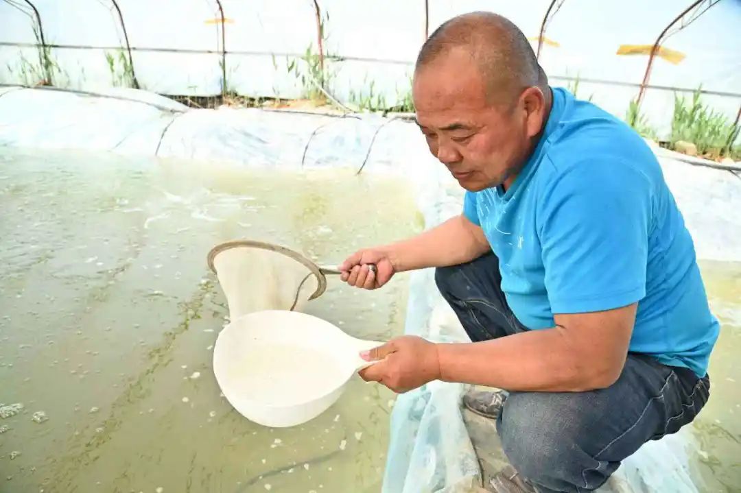 据虾塘技术人员刘成祥介绍,此次投放的虾苗经过严格筛选,并采用“暖棚育苗+分塘精养”技术,确保虾苗适应本地水质环境。“我们提前调控了虾塘的盐碱度、pH值和溶氧量,水温稳定在25℃-28℃的最佳生长区间。同时,采用错峰投苗策略,延长上市周期,提高经济效益。”刘成祥说,今年合作社预计产量可达30吨,产值超百万元。