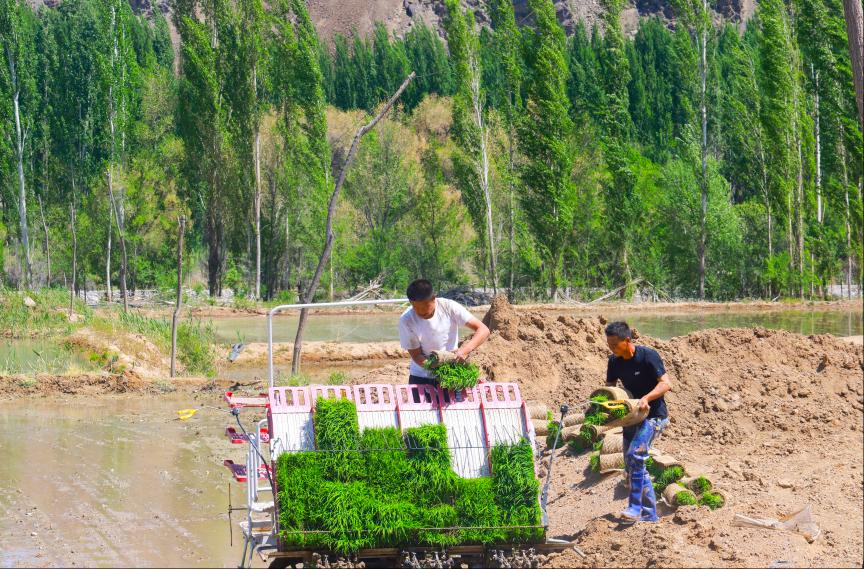 五月的精河大地生机盎然,正值水稻插秧关键期。在精河县大河沿子镇的广袤田野上,农机轰鸣声响彻田间,满载秧苗的高速插秧机正往来穿梭,将翠绿秧苗整齐插入沃土,勾勒出科技赋能农业的壮美画卷。