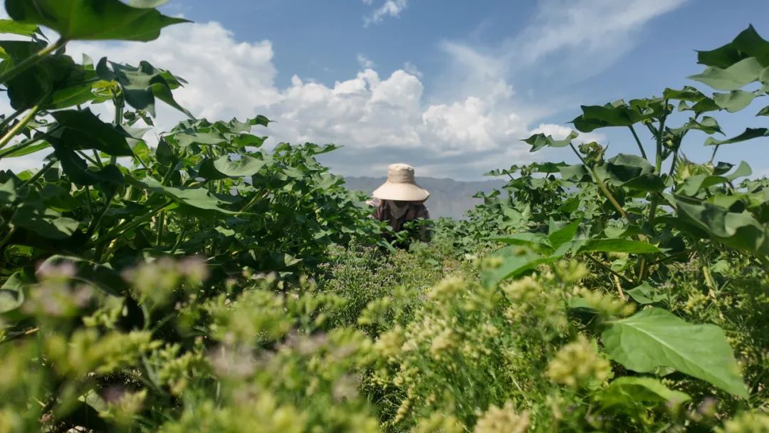 “今年种了340亩棉花,采取套种孜然的种植方式。现在正是孜然采收期,有60余名工人在采收。”马金峰说道。今年47岁的马金峰有着30多年棉花种植经验。2023年,外出考察棉花与孜然套种技术后,发现大河沿子镇适宜孜然生长。在村委会和当地政府的大力支持下,他和村民创新尝试“棉花+孜然”套种模式。