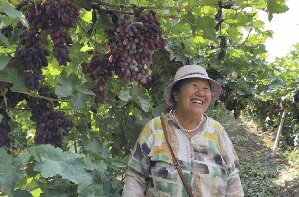 刘桂清向记者介绍道:“葡萄园有8亩,托里镇技术人员经常来指导种植技术,去年收入7万元,今年收入会更好。”望着成熟的果实,刘桂清露出了淳朴的笑容。