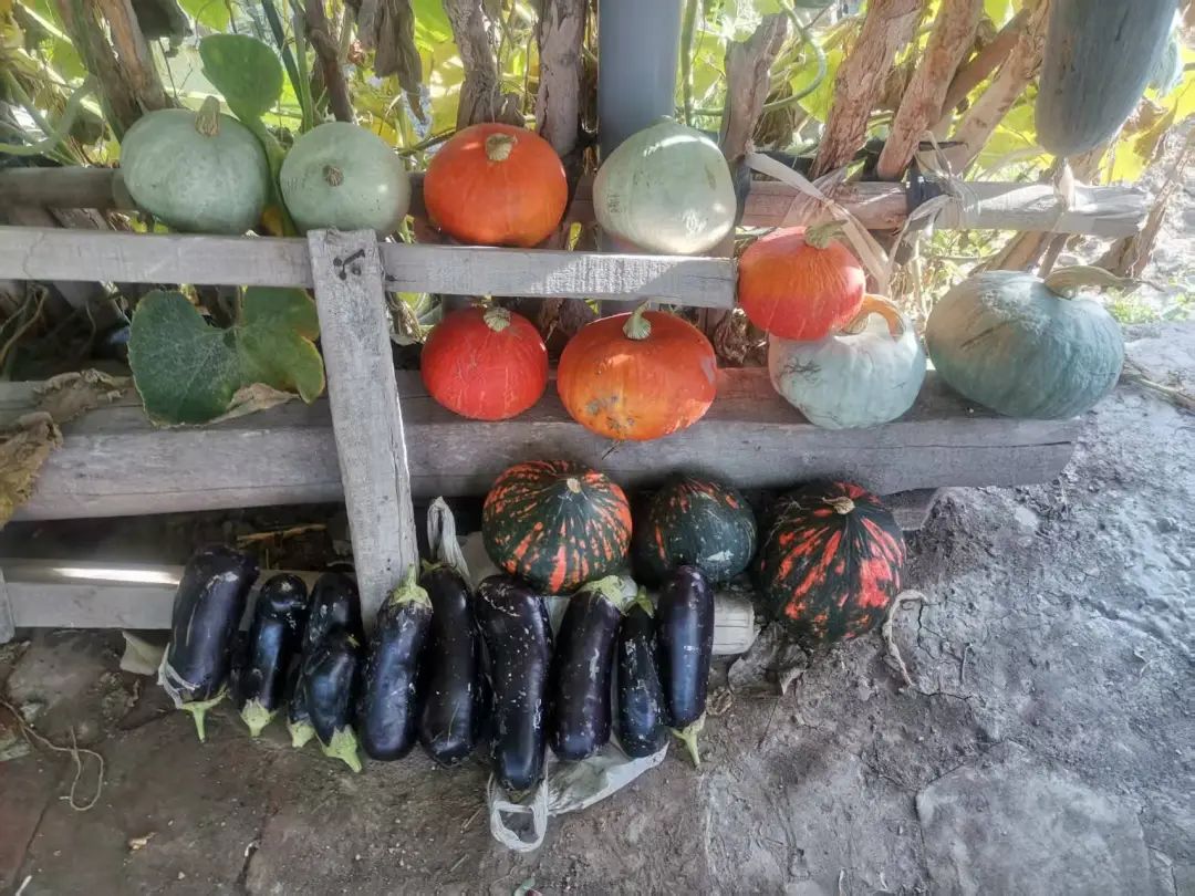 院墙边葡萄藤爬满架,紫绿相间的果实垂成串;篱笆旁南瓜、辣椒挂得热闹,青脆里透着新鲜;屋前小菜畦分垄种着小白菜,嫩得能掐出水来。初秋时节,阿合其农场农家小院的果蔬陆续成熟,成了“方寸聚宝盆”。