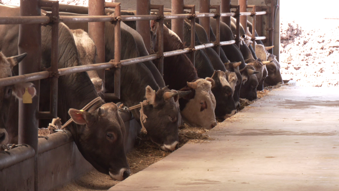 9月2日,在大河沿子镇浩斯托干村养殖户王晓祥的牛圈里,一头头西门塔尔牛体态肥硕正吃着草料。王晓祥介绍,目前养殖了60多头西门塔尔牛,其中95%的母牛已通过人工受孕,预计明年3月能迎来牛犊降生。
