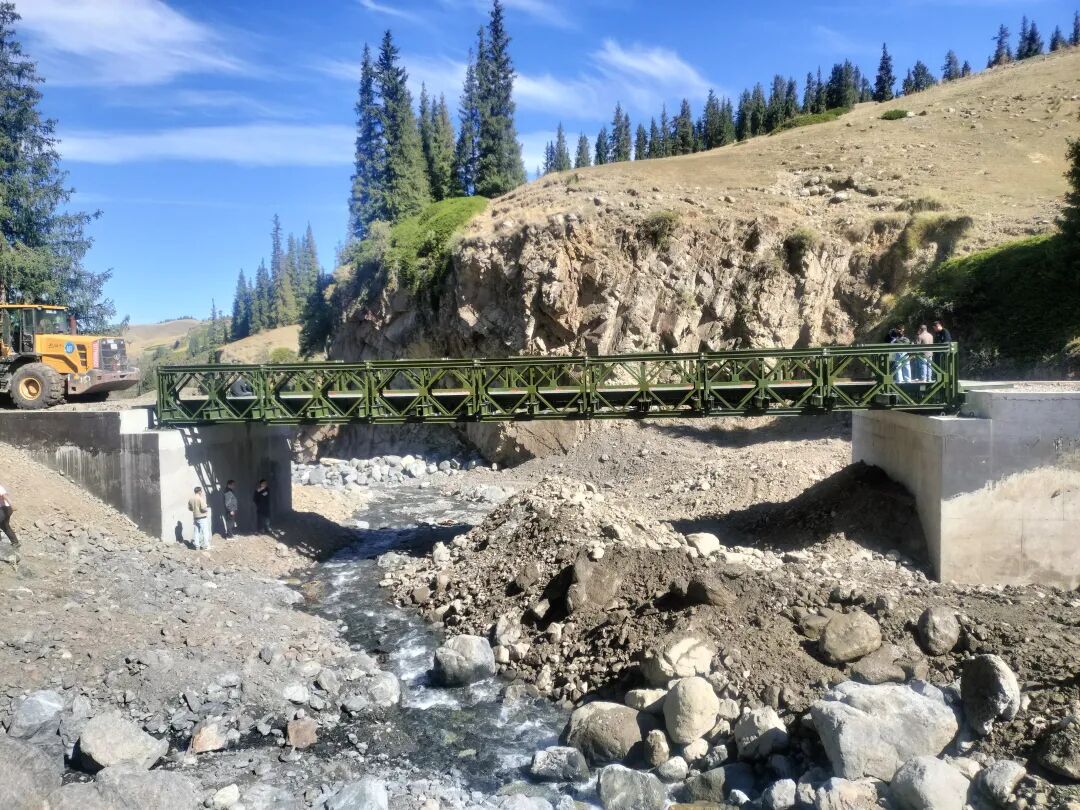 如今,崭新的贝雷梁结构钢架桥稳稳横跨在库克萨依河上,平整宽阔的桥面、牢固醒目的防护栏,让每一位通行者都倍感安心。这座桥带来的不仅是牧民转场、日常出行难题的大幅缓解,更给畜牧运输商户带来了实惠——货车现在可以直接开到草场,运输效率较以往翻了一倍,为八家户农场畜牧业的持续发展注入了强劲动力,也让巴哈郭勒桥成为一座连通民生福祉与乡村振兴的坚实桥梁。