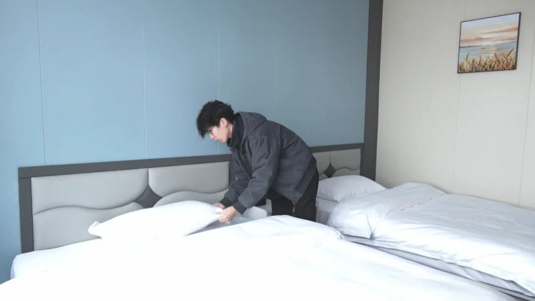 从小在五台长大,有着浓厚家乡情怀的高应枫是驼铃湖畔宾馆负责人,2024年她放弃外地服装生意,投资150万元回乡发展住宿产业。“安全卫生是第一位。”她在宾馆设充电桩、专属车位,客房用品“一天一换一洗”,还赠送本地水果、奶茶,推荐精河枸杞、杂烩汤等特产、美食。“现在每月收入4万元左右,游客满意就值了。”高应枫说。